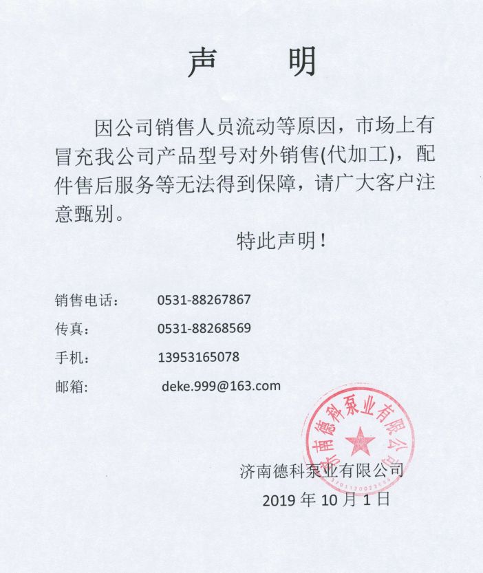 濟南德科泵業(yè)有限公司聲明