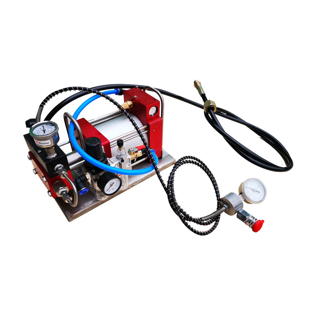 濟(jì)南德科便攜式氮?dú)鈴椈沙錃庋b置具有體積小,壓力高,方便攜帶,衛(wèi)生清潔,方便使用等優(yōu)點(diǎn)。其核心是以濟(jì)南德科專利產(chǎn)品“氮?dú)?/span>增壓泵”作為增壓動(dòng)力裝置,常用的型號(hào)是DTD、DTA、DTC氮?dú)庠鰤罕?/u>,只需要入口接上氮?dú)怃撈?,出口配有高壓開關(guān),卸荷開關(guān),高壓壓力表等,最高壓力可達(dá)320bar。
