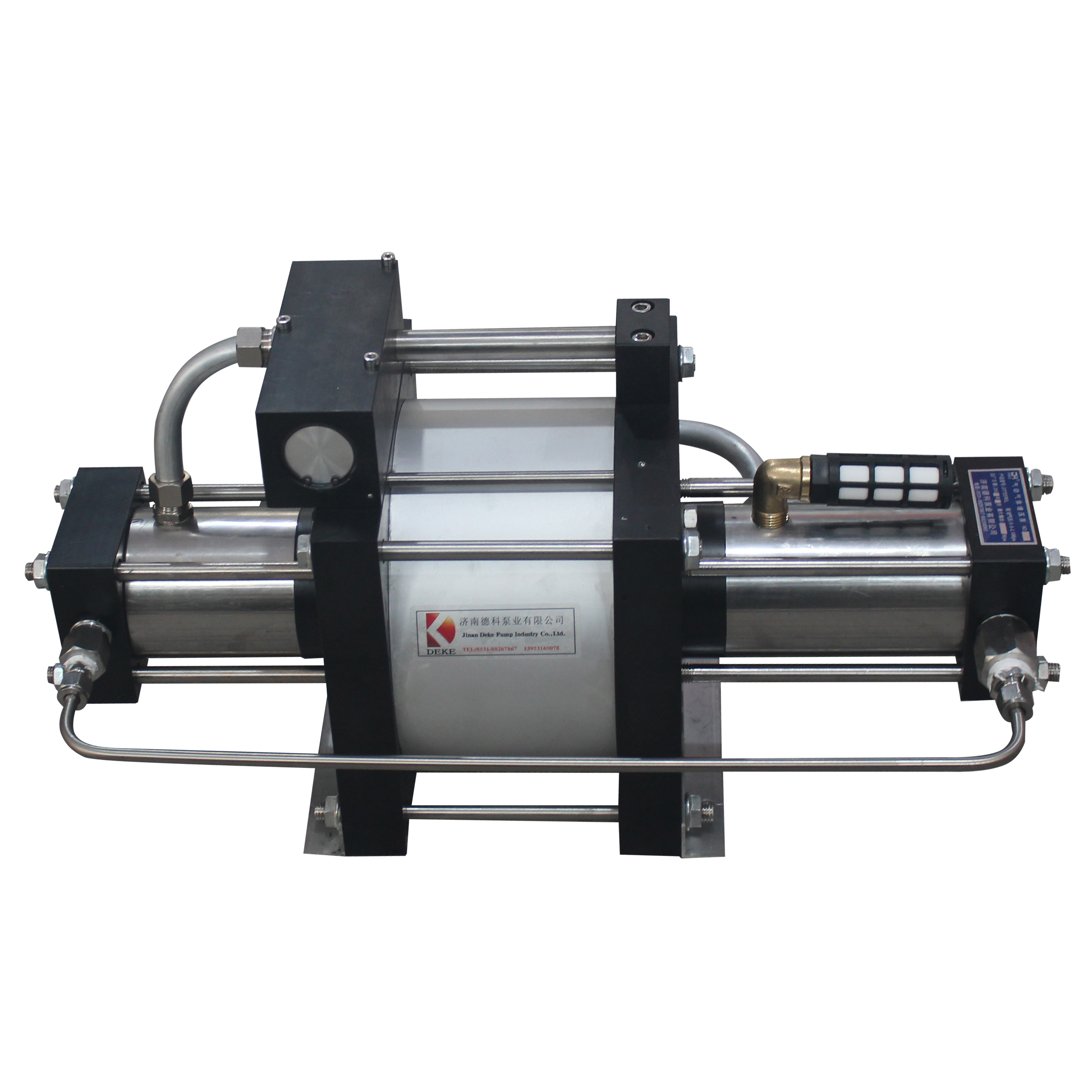 濟(jì)南德科DTD系列氣體增壓泵采用單氣控非平衡氣體分配閥來實(shí)現(xiàn)泵的往復(fù)運(yùn)動,全部采用鋁合金及不銹鋼制造,全部密封件均為進(jìn)口優(yōu)質(zhì)產(chǎn)品,最大設(shè)計驅(qū)動氣壓均為10bar,為了保證泵的壽命,建議驅(qū)動氣壓≤8bar。該系列泵的驅(qū)動活塞直徑為160mm或200mm,為單作用泵,所有單作用泵泵頭均帶有排氣冷卻。