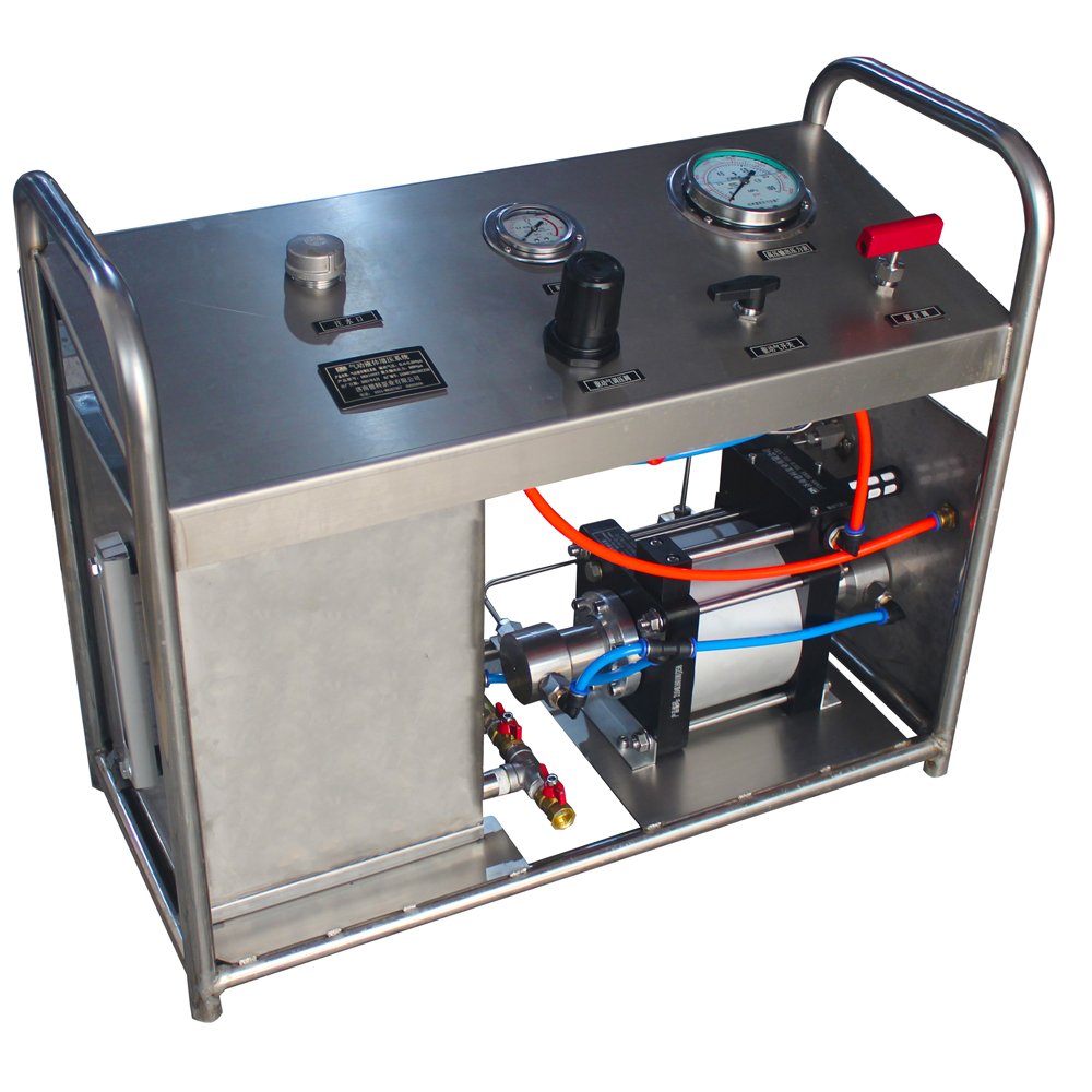 5、設(shè)備構(gòu)成:主要由箱體、氣動液體增壓泵及管路臺組成,包括驅(qū)動氣壓力表、高壓輸出表、驅(qū)動氣開關(guān)、高壓輸出開關(guān)。