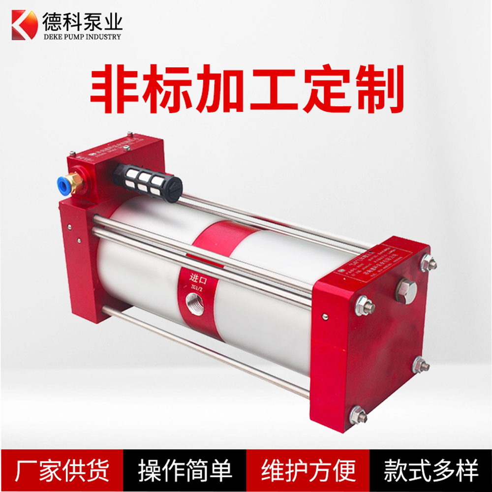 而DTE02空氣增壓泵則是是使用純凈壓縮空氣為驅(qū)動(dòng)動(dòng)力源,以空壓機(jī)輸出的壓縮空氣作為壓力源,采用純凈空氣作為被增壓介質(zhì),輸出空氣壓力與驅(qū)動(dòng)氣源壓力成比例。通過(guò)對(duì)驅(qū)動(dòng)氣源壓力的調(diào)整,便能得到相應(yīng)的增壓后的空氣壓力。當(dāng)驅(qū)動(dòng)氣源壓力與增壓后的氣體壓力達(dá)到平衡時(shí),DTE02空氣增壓泵便停止增壓,輸出氣體壓力也就穩(wěn)定在預(yù)調(diào)的壓力上。因而具有防爆、節(jié)能、環(huán)保、輸出壓力可調(diào)、體積小、重量輕、操作簡(jiǎn)單、性能可靠、適用范圍廣等特點(diǎn)。
