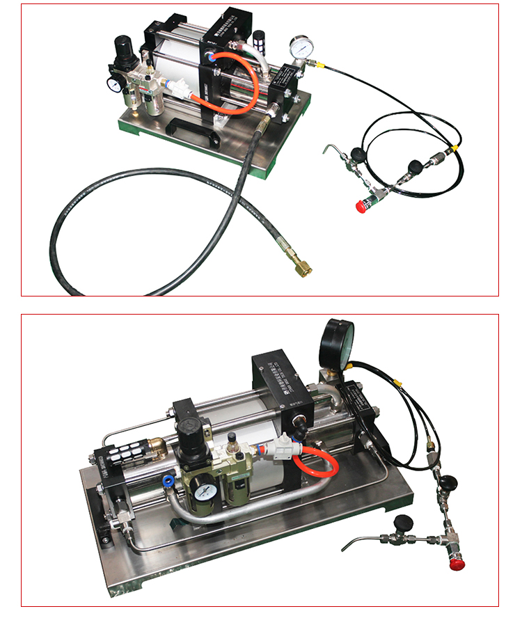 這款便攜式氣動增壓單元的高性能之處,不僅在于自動保壓保壓方面:無論何種原因造成保壓回路壓力下降,這款泵將自動啟動,補(bǔ)充泄露壓力,保持回路壓力恒定;而且在于這是一種活塞式泵,工作時,便攜式氣動增壓單元迅速往復(fù)工作,隨著輸出壓力的增高,泵的往復(fù)速度減慢直至停止,此時,便攜式氣動增壓單元輸出的壓力恒定,能量消耗最低,各部件停止運(yùn)動,由于活塞式泵結(jié)構(gòu)簡單,故易于維護(hù)。